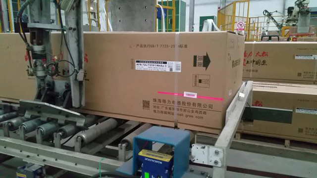 本項(xiàng)目由我公司于2015年底起,歷經(jīng)半年,在蕪湖格力率先自主研發(fā)成功并逐步完善,至今已有七條線正常運(yùn)行,武漢格力的樣板線也已正常運(yùn)行。項(xiàng)目分為兩部分,一是在檢漏段將條碼與生產(chǎn)數(shù)據(jù)庫(kù)進(jìn)行對(duì)比,將不合格品剔除到返修線,達(dá)到預(yù)先篩選的目的;二是在機(jī)器人抓取段,掃碼槍讀取條碼后機(jī)器人再抓取,滿垛后自動(dòng)將數(shù)據(jù)堆棧并傳送給上位生產(chǎn)數(shù)據(jù)庫(kù),對(duì)不合格品進(jìn)行記錄并報(bào)警給人工處理。工控機(jī)系統(tǒng)涉及開(kāi)發(fā)新的程序和界面, 修改PLC與機(jī)器人控制程序,并與掃碼槍和MES系統(tǒng)緊密配合,實(shí)現(xiàn)自動(dòng)掃碼上傳。